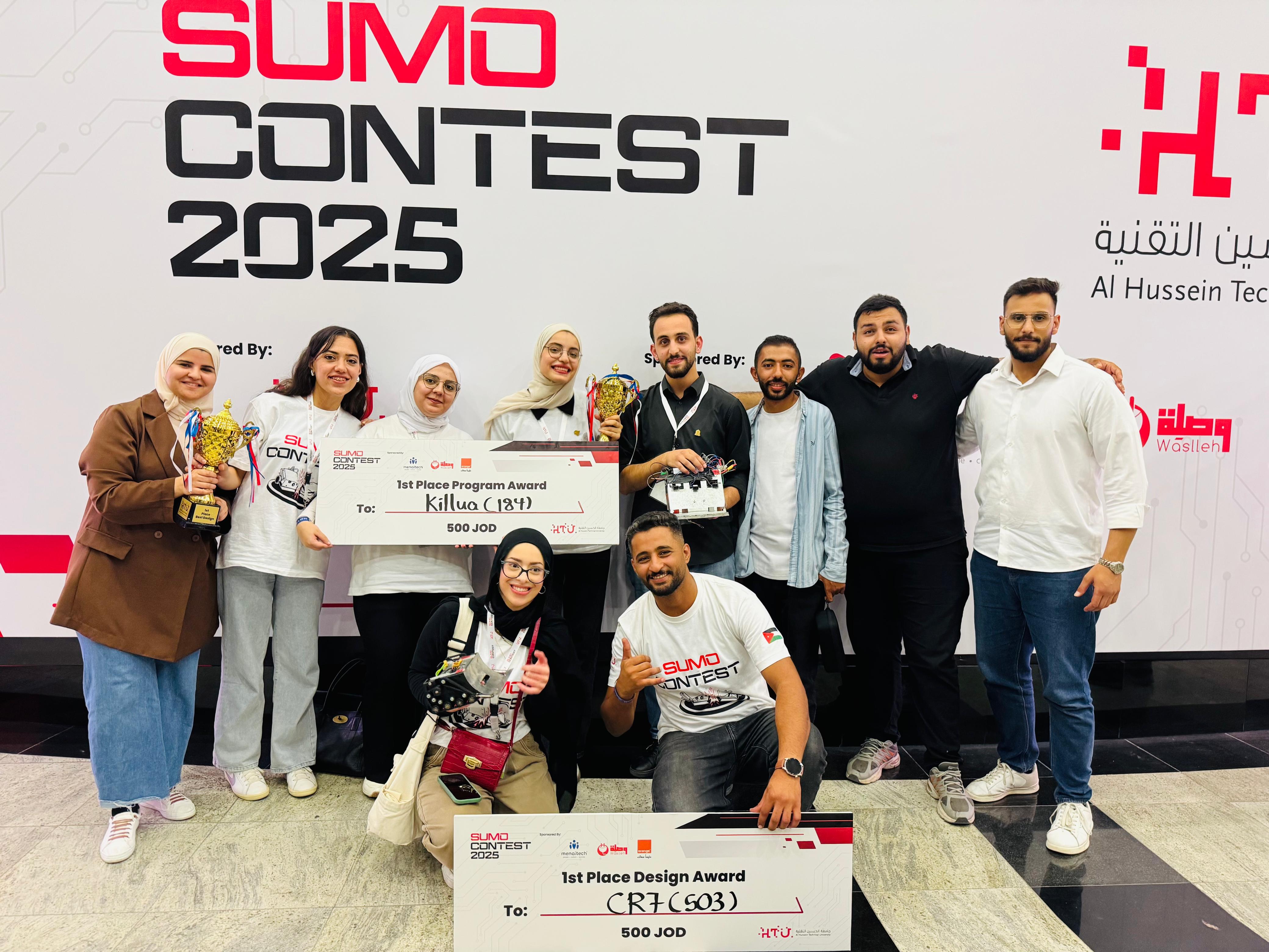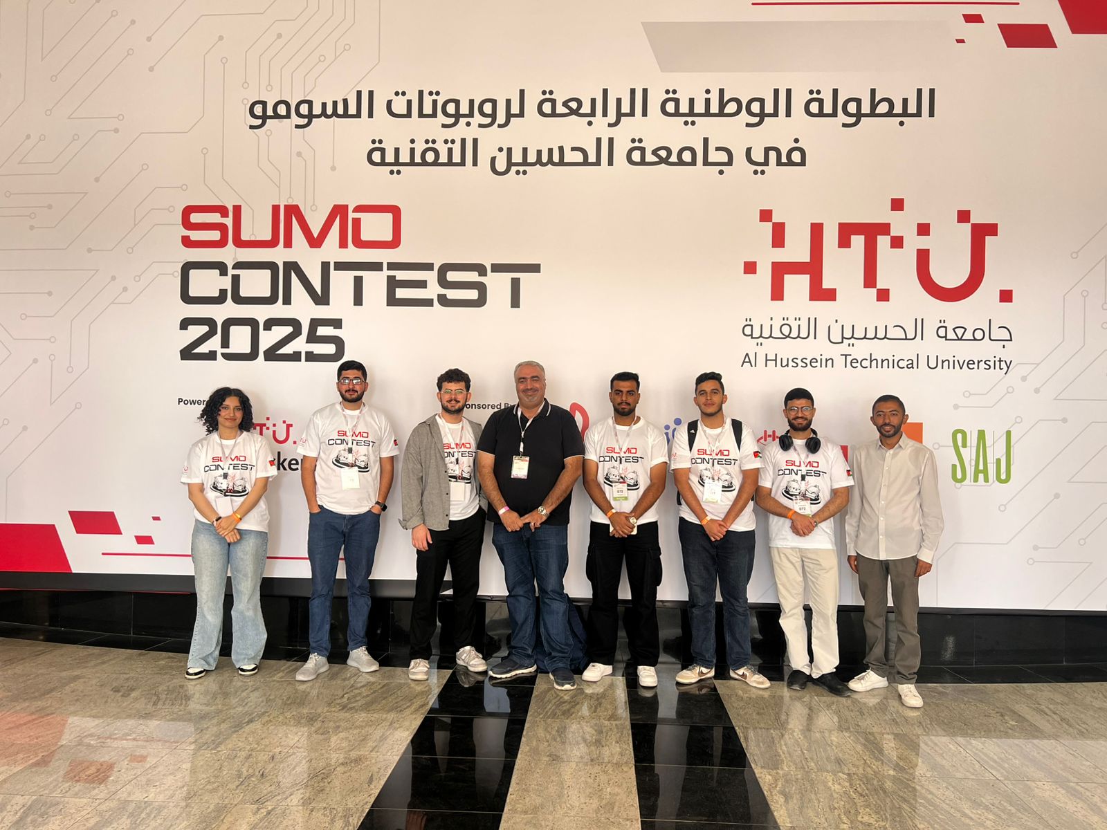 Hijjawi Faculty for Engineering Technology at Yarmouk University achieved a new national milestone in the Fourth National SUMO Robotics Contest 2025, hosted by Al-Hussein Technical University with the participation of more than 230 teams representing various Jordanian universities.