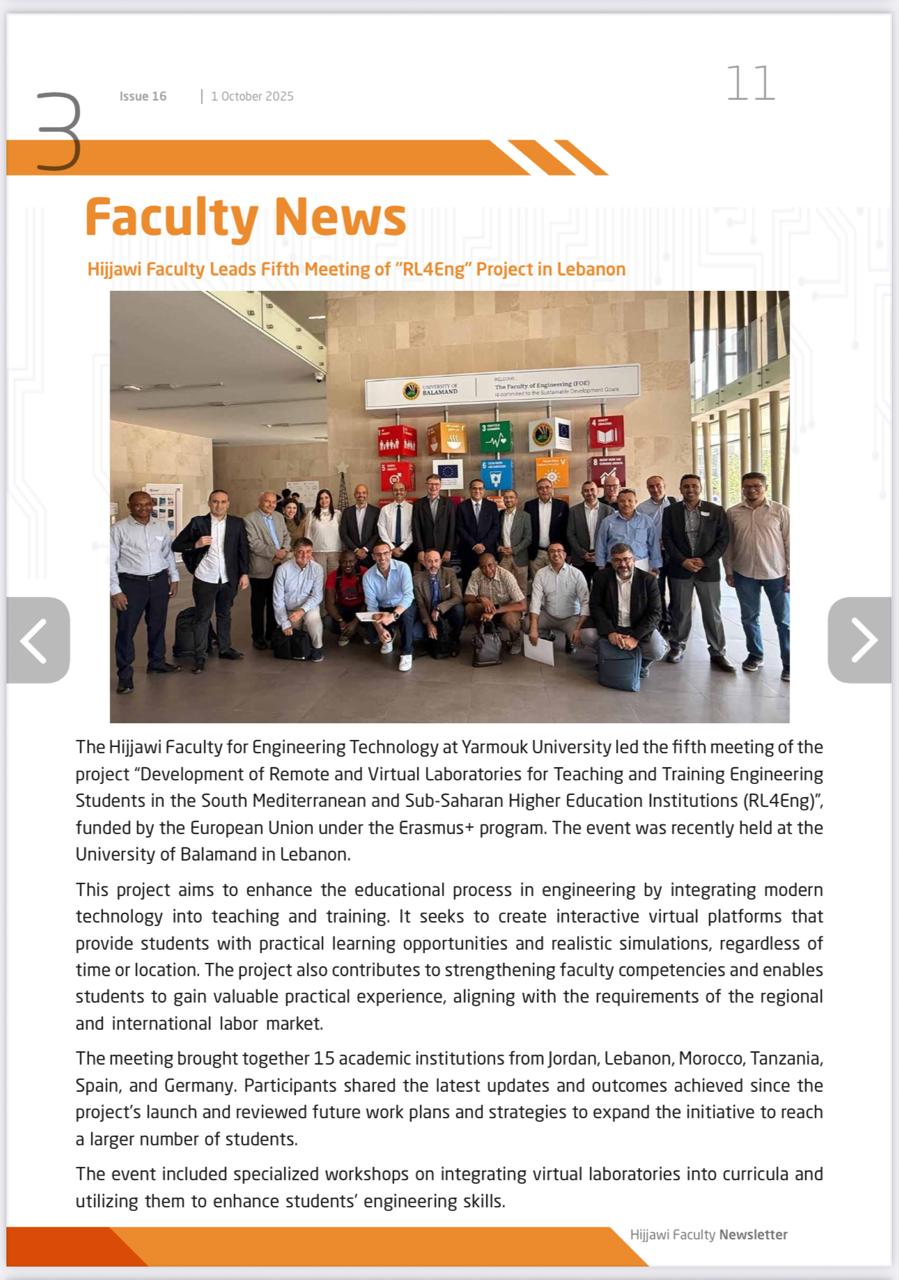 The Hijjawi Faculty for Engineering Technology at Yarmouk University has published the 16th edition of its periodic electronic newsletter in English.