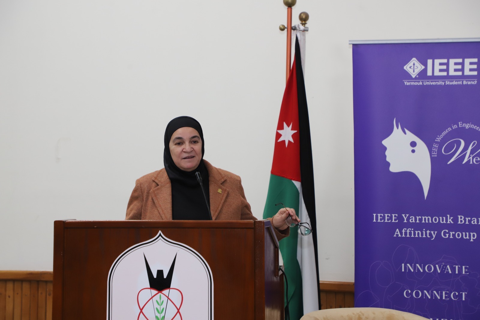 Dr. Yusra Obeidat, Head of the Electronics Engineering Department and Advisor to the Women in Engineering Society at the university, delivered a speech praising the determination and strong will of Jordanian women and their excellence in all fields. She noted the significant and continuous support they receive from the wise Hashemite leadership and commended the national efforts in supporting and empowering women, which has positively impacted their presence in numerous leadership and administrative positions.