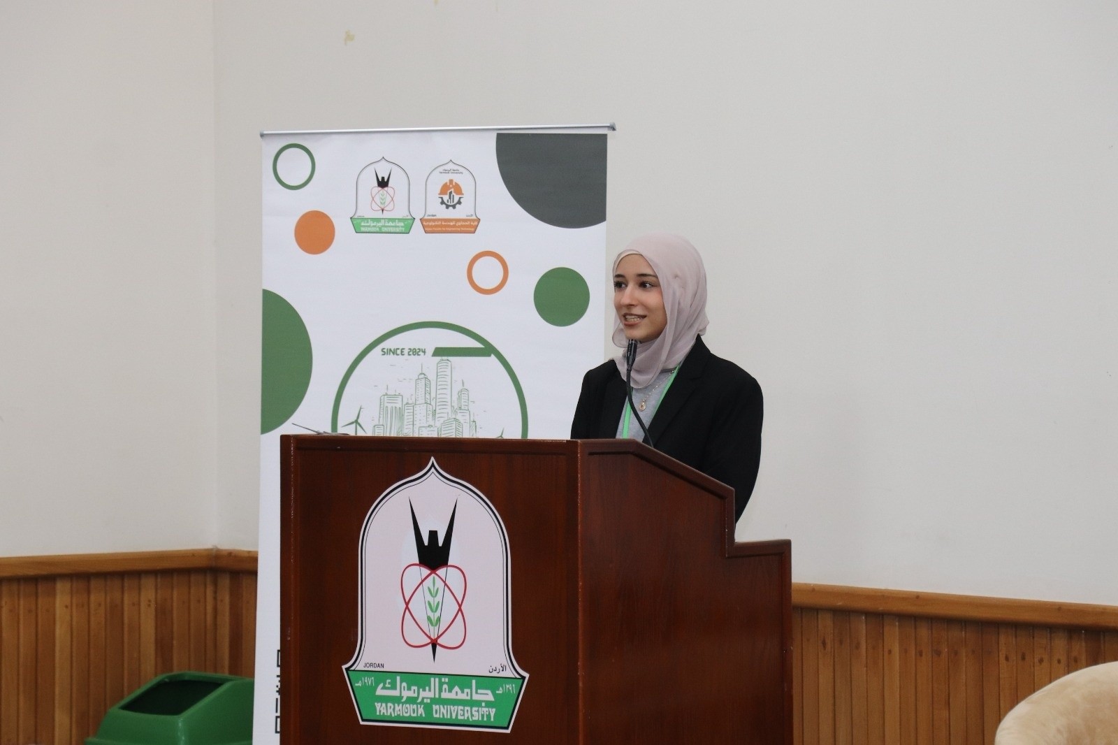 During the event, the team presented the college with a commemorative gift: a recycled artwork bearing the Al-Hijjawi College of Engineering Technology logo, as an expression of their appreciation and pride in the college.